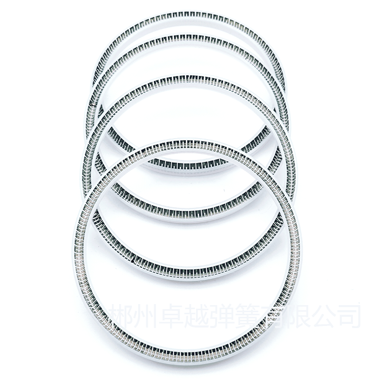 泛塞封彈簧的工作原理是利用彈簧的彈力將密封環(huán)緊緊壓在密封面上,形成可靠的密封。當密封面之間存在壓力差時,彈簧會進一步壓縮,使密封環(huán)與密封面之間的接觸壓力增大,從而提高密封性能。同時,密封環(huán)的特殊結(jié)構(gòu)設計能夠使其在密封過程中自動適應密封面的形狀和尺寸變化,確保密封的可靠性。